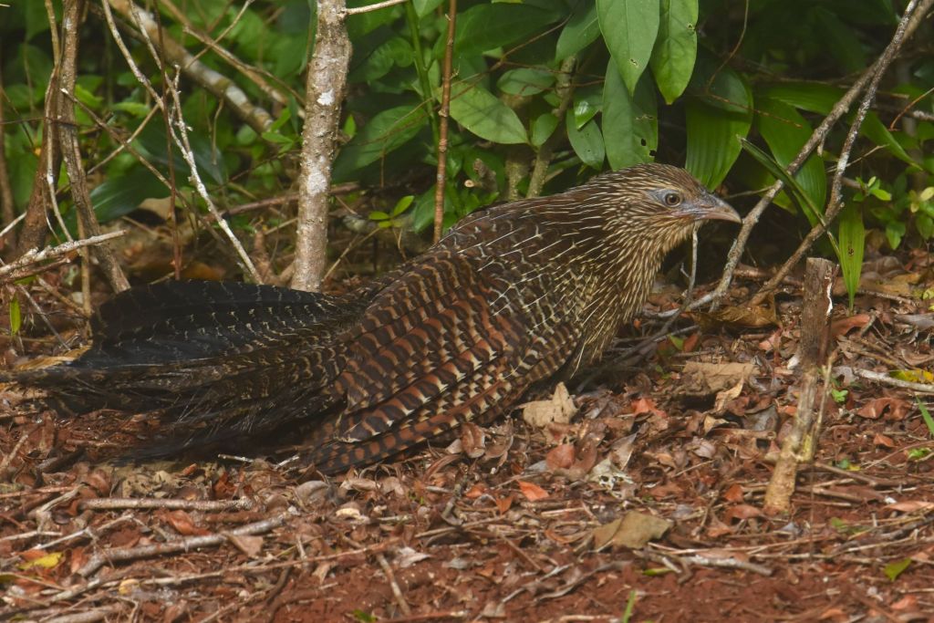 In those days, I lived in a traditional Queenslander. The hall was once a veranda running the full length of the house. It had been enclosed with louvres to make a pleasant, airy office. I’d leave the door open to catch the breeze. To wildlife, an open door is an invitation. I’d been visited by a grey fantail, an entire family of pied butcherbirds and a brush-turkey, who had entered with uncharacteristic stealth and made off with a shoe. This was the first pheasant coucal.