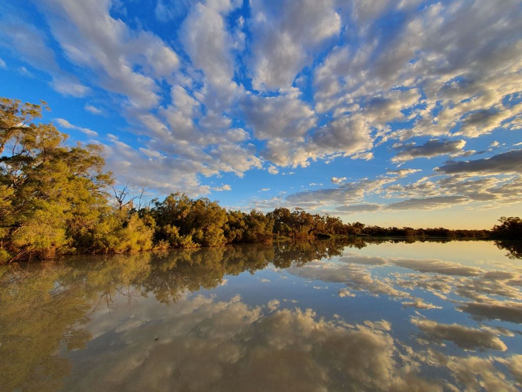 In the golden hour, the world stops. Egrets are motionless in the reeds. Cormorants fold their wings. Fish lie still among dead trees dragged down to the river bed by long-remembered floods.