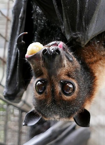 It is feeding time at the Tolga bat hospital on the Atherton Tablelands, in the hills west of Cairns. Garlands of sliced apples, pears and rockmelon festoon the feeding shelter. High above us, flying foxes are watching, their eyes bright with interest, their ears swivelling like radar dishes. They clamber down and bury their faces in this all-you-can-eat fruit salad. Never have bats been more relatable.